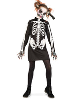 Dieses kurze Kleid sorgt an Halloween für einen tollen gruseligen Look! Schlicht und gerade deshalb so schön wirkt es mit dem einfachen gerade Schnitt. Von der tiefschwarzen Farbe hebt sich der große, leuchtend weiße Skelettaufdruck eindrucksvoll ab. So können Knochenmädchen sich auf jeder Gruselparty sehen lassen!