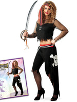 narrenwelt Piratin Pirate M Damen-Kostüm Set 4tlg Oberteil + Hose + Gürtel + Stirnband PB1506 Fasching