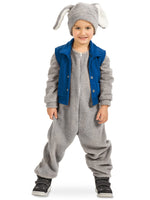Dieser kleine Hasenjunge hat es Faust dick hinter den Ohren. Der graue Plüsch Overall mit der coolen kurzen Weste und der frechen Mützen verwandelt dich in einen coolen rockigen Hasen. Das klassische Häschen Kostüm neu und modern interpretiert für freche Jungs und Mädchen.