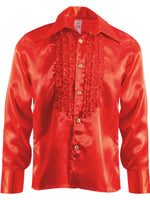 Mit diesem stylischen 70er Jahre Rüschenhemd könnt Ihr Euch als Schlagerstar a la Gildo oder Horn toll in Szene setzen! Der große Spitzkragen und die gekräuselten Rüschenleisten im Brustbereich versprühen Sexappeal und Extravaganz. Der glänzende Satinstoff ist perfekt geeignet für das große Scheinwerfer Licht. Die Mädels werden euch zu Füssen liegen.
