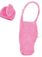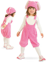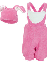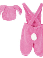 • Latzhose rosa mit weißem Bommel-Schwänzchen und rosafarbener Mütze mit Ohren