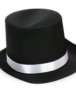 Gentleman Zylinder Hut Edel - Satinoptik schwarz mit Satinband weiss 59/60 cm Erwachsene Unisex Halloween Kostüm Accessoire