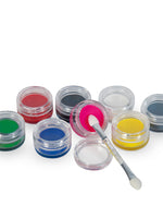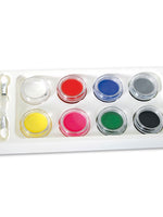 - Die Farben auf Wasserbasis eignen sich zum Auftragen auf Gesicht und Körper. Die Farben lassen sich leicht auftragen und ebenso leicht entfernen. Das Set besteht aus 8 Farben mit Applikator, 8 Töpfchen mit Farbe a'4 gr = 32 gr.