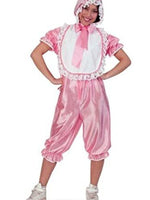 Kurzoverall mit großem, weißem Lätzchen, Haube mit Band für große SchleifeFarbe: rosaMaterial: Glanzstoff, 100% PESlieferbare Größen: M + XLLieferumfang: 1 Kurzoverall Baby blauAbbildung Design-Beispiel, Lieferung ohne sonstiges Zubehörund das findest Du in unserem Shop narrenwelt.com...