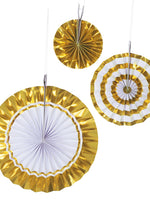 🎆 Feiere den Jahreswechsel stilvoll mit unserem eleganten Party-/Silvester Deko Set! Dieses Set umfasst drei prachtvolle Rosetten mit einem Durchmesser von ca. 30 cm, 20 cm und 10 cm. Die Rosetten erstrahlen in einem edlen Weiß und Gold, perfekt, um eine festliche und glamouröse Atmosphäre zu schaffen. Jede Rosette kann einfach mit einer Schnur an der Decke oder Wand befestigt werden, sodass du deiner Kreativität freien Lauf lassen kannst.