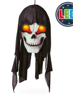 🎃 Setze auf deiner nächsten Halloween-Party oder deinem Event gruselige Akzente mit diesem blinkenden Halloween Deko-Hänger Schädel! Der Schädel ist mit einer schwarzen Kapuze verhüllt und verfügt über blinkende LEDs in den Augen, die für einen schaurigen Effekt sorgen.