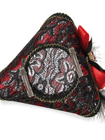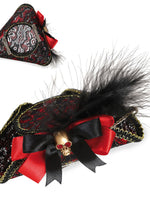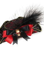 - Fascinator/Minihut in schwarz mit schönen Goldborten, roter und schwarzer Schleife, goldener Totenkopf und Federn