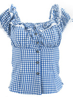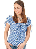 Im klassischen, blauen Karomuster kommt diese Bluse daher. Die Bluse hat eine Knopfleiste und Bänder an den Ärmeln. Ausschnitt und Armabschluss sind mit weißer Borde verziert. Weiteres Zubehör, wie die Blond-Zöpfchen-Perücke, Haarbänder oder niedliche, passende Dirndl-Täschchen bei uns im Shop