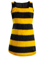 Was summt denn da herum? Die gelben Streifen zeigen es: Ein freches kleines Bienchen muss es sein! Das hübsche Kleid im geraden Schnitt lässt viel Bewegungsfreiheit und kann prima mit verschiedenen Accessoires kombiniert werden. Herrlich weich aus Plüsch gefertigt, ist es fast zu schade, um nur an Karneval getragen zu werden.