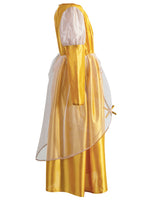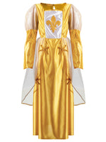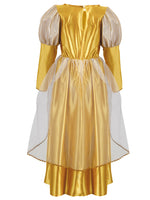 Zurück in die Zeit der Ritter und Burgfräuleins. In dieser wunderschönen, goldgelben Robe mit der Lilie als Wappen gelingt die fantasievolle Zeitreise im Spiel ganz schnell. Ganz besondere Hingucker sind die goldfarbenen Puffärmel, die gerne von den edlen Damen getragen wurden. Die mit Litze verzierte Schleppe ist abnehmbar.