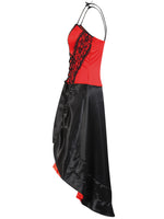 Kleid in rot (Oberteil)/schwarz( Rock) mit Spaghettiträgern und schwarzen Spitzeneinsätzen am vorderen Oberteil , Rock in schwarz mit rotem Innensaum und einem Tunnelzug zum variablen Tragen Material: 100% PES Lieferumfang: Kleid CAN CAN Lieferung ohne...