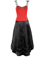- Kleid in rot (Oberteil)/schwarz( Rock) mit Spaghettiträgern und schwarzen Spitzeneinsätzen am vorderen Oberteil , Rock in schwarz mit rotem Innensaum und einem Tunnelzug zum variablen Tragen