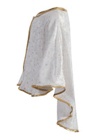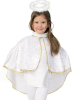Leicht wie eine zarte Schneeflocke kommt dieses Cape Engel für Kleinkinder daher, aus weichem Pannesamt mit Goldbordüren und über und über mit goldenen Sternchen übersät. Ein himmlisches, allerliebstes Engelkostümchen für die ganz Kleinen. Zudem mit sicherem Verschluss(ohne Knopf) und einfach zum Umhängen über z.Bsp. ein weißes T-Shirt und weiße Strumpfhosen. Dieses Kostüm ist sehr wirkungsvoll und verzaubert jeden zur Weihnachtszeit beim Anblick der herzallerliebsten, süßen Engelchen.