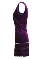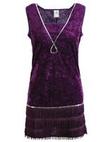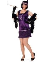 Zurück in die Zwanziger Jahre des vorigen Jahrhunderts mit diesem tollen Kleid! Auch als Remark zur Great-Gatsby-Verfilmung ein wunderschönes Kostüm. Aus dunkelviolettem Pannesamt, mit Fransen und Pailletten aufwändig verziert, ist das Kostüm im unverwechselbaren Stil dieses wilden Jahrzehnts gestaltet. Ein ungewöhnlicher Look, der die Blicke auf jeder Mottoparty auf sich ziehen wird!