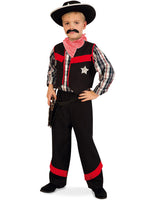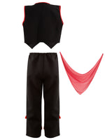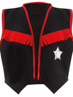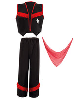 2tg. Cowboy Anzug, Hose + Weste, inkl. TuchFarbe: schwarz mit roten FransenMaterial: 100% PolyesterLieferumfang: 1 Anzug Cowboy schwarz inkl. TuchAbbildung Design-Beispiel, Lieferung ohne sonstiges Zubehör
