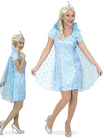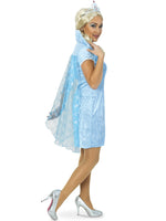 Kühl schimmernd, mit glitzernden Kristallen, zart und magisch wie der Winter, so wirkt dieses tolle Kleid. Fans moderner Märchen schlüpfen damit in die Rolle eines absoluten Lieblingscharakters. Denn nicht nur kleine Mädchen begeistern sich für den Prinzessinnen-Look in himmelblau, auch junggebliebene Erwachsene fasziniert die magische Ausstrahlung der Königin des Eises. Lieferumfang: Kleid