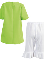 - Kostüm Set Freche Hexe ( Tunika grün + Pluderhose weiß) inkl. Schleife(rot)