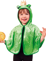 Süßes Cape Froschkönig für die Allerkleinsten. Wunderbar weich, mit Kapuze, riesigen Froschaugen und natürlich mit einer goldenen Krone, lässt das Cape für den ruckzuck verwandelten Hüpfer nichts zu wünschen übrig.