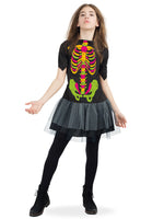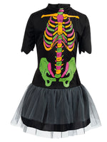 narrenwelt Kostüm Gerippchen Kleid nachtleuchtend GID bunt Halloween Skelett Mädchen Teenie 140 - 164