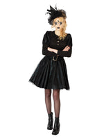 🧹 Entdecke die zauberhafte Welt der Magie mit dem eindrucksvollen Hexenkostüm „Hexe Mara“! Dieses Kostüm ist die perfekte Wahl für kleine Hexen, die an Halloween oder Fasching alle verzaubern möchten. Das Kleid besticht durch seinen klassischen, schwarzen Stoff und die charmanten Puffärmel, die aus einem changierenden Material gefertigt sind und je nach Lichteinfall in verschiedenen Farben schimmern. Dieser besondere Stoff findet sich auch im weit schwingenden Rock wieder, der dem Kostüm eine magische Note verleiht. Ein passender Gürtel akzentuiert die Taille und sorgt für eine schöne Silhouette, während er dem Outfit zusätzlichen Halt und eine stilvolle Optik verleiht. Produktdetails: 🧹Material: 100% Polyester 🧹Farbe: Schwarz mit schimmernden Effekten 🧹Design: Puffärmel und Rock aus changierendem Stoff, Gürtel inklusive 🧹Stil: Hexe Mara, ideal für Halloween und Fasching 🧹Lieferumfang: Kleid mit Gürtel (abgebildetes Zubehör nicht enthalten)