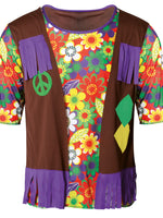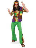 Voll im Geiste der Flower-Power-Zeit steht dieses schöne Kostüm für Herren. Neben dem fröhlichen Blumenmuster sorgen dafür die ausgestellten Hosenbeine im Bell-Bottom-Look und das coole Stirnband. Damit können auch moderne Hippies an Karneval richtig ausgelassen...