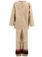 Als kleiner Indianer hat Ihr Kind einen tollen Auftritt mit diesem zweiteiligen Anzug in einem schönen Beige. Hose und Oberteil sind abgesetzt mit schönen Borten und Fransen. So lässt sich eine Karnevalparty oder Motto-Fete super feiern.