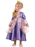 Welches kleine Mädchen träumt nicht davon einmal Prinzessin zu sein. Mit dieser zarten Robe taucht ihr ein in die wunderbare Märchenwelt der Prinzessinen. Die kleine Mini-Prinzessin kommt in die KITA, zur Geburtstagsfeier oder zum nächsten Fest ganz in einem glänzenden, lila Kleid umhüllt von duftigem Tüll mit Blüten und Goldbordüren