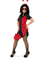 Als kurzes Kleid oder als Tunika mit Leggins dieses Ladybird Kostüm macht immer einen fröhlich bunten Eindruck.. Der gepunktete Stoff ist Plüschmaterial, der schwarze Einsatz besteht aus samtigem Material. tlg. Damen - Kleid mit Plüscheinsatz...