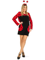 So ein süßer Käfer ! Verwandeln Sie sich in einen hinreißenden Marienkäfer mit diesem tollen Kleid. Ob sexy im Minikleid oder lässig mit schwarzer Leggins, dieses Kleid sieht immer toll aus. Die Flügel sind angenäht, ebenso wie die Taschen, die aufgesetzt wurden.