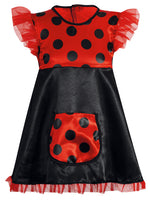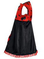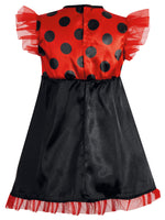 Kleine Mädchen lieben Marienkäfer und freuen sich, wenn sie im Sommer draußen eines der schwarzgepunkteten Tierchen auf die Hand nehmen können. Mit diesem schönen Kleid können sie selbst einmal in die Rolle des kleinen Käfers schlüpfen. Die vielen fröhlichen Punkte und die mädchenhaften Rüschen machen das Kostüm zu einem Lieblingsstück. Und in die große, aufgesetzte Tasche passen leicht ein Taschentuch oder ein paar Süßigkeiten.