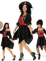 narrenwelt Kostüm Megan Damen Kleid + Gürtel Carmenlook Piratin Flamengotänzerin Renaissance wandelbares Outfit