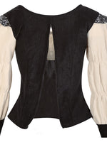 Tauchen Sie ein in die sagenumwobene Welt der Nibelungen. Fühlen Sie sich wie Kriemhild und Co. in dieser historischen, schlichten, königlichen Robe. Das 2 tlg. Kleid besticht durch seinen schnörkellosen Schnitt mit dem schönen Dekolleté - Ausschnitt und seinem geraden Fall. Zur beigen Grundfarbe erzielt besonders das Oberteil mit einem schwarzen, geschnürten Mieder, abgesetzten Schulterarmklappen und Armabschlüssen in Nietendesign, große Wirkung. Das Oberteil wird im Rücken durch einen Reißverschluß geschlossen Das Mieder setzt sich seitlich über den Rock, der mit Gummizug versehen ist, in der Verlängerung fort.