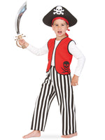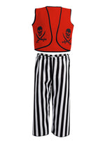 Eine tolle Ausstattung für kleine Piraten ist dieses zweiteilige Kostüm. In den typischen Piratenfarben gestaltet, wirkt es besonders durch den tollen Totenkopfaufdruck auf der Weste. So können Nachwuchs-Seeräuber sich auf Beutezug begeben, Schiffe kapern, ihre Schätze vergraben… kurz, alles, was ein richtiger Pirat eben so tut.