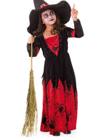 - Kleid Hexe Samantha lang, schwarz mit rot und mit Spinne am Oberteil