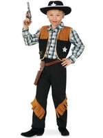 Gauner und Banditen, nehmt euch in Acht! Dieser Sheriff jagt euch quer durch die Prärie. Das tolle zweiteilige Outfit hat alles, was ein richtiger Wildwest-Held braucht: Schöne Fransen in Wildleder-Optik, ein integrierter Patronenhalter mit täuschend...