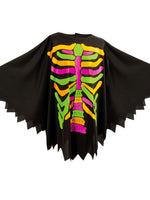 - schwarzer Umhang mit Print Skelett bunt auf schwarzem Grund, nachtleuchtend