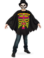 narrenwelt Kostüm Umhang Skelett bunt GID nachtleuchtend 1 tlg. Umhang Überwurf Teenie Line Halloween Skelett Gr 128