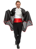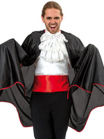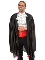 Finstere Halloween - Gestalten laden zum Tanz ein, hier darf der Vampir natürlich nicht fehlen! Mit diesem klassischem Vampircape in nachtschwarz und den als Kontrast verarbeiteten, blutroten Abschlüssen sorgen Sie für einen schauerlichen Auftritt..