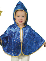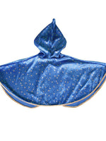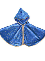 Cape Zauberer, blau mit Goldsternen und Kapuze