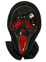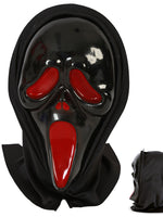 Lieferumfang: 1 Maske Geist schwarz/rot mit Haube schwarz
