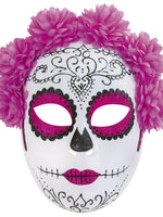 Halbmaske Horror mexikanischer Totentag (Dia de los Muertos) Kunstblumen Pink