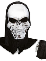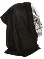 🧛 Tauchen ein in die Welt der Dunkelheit mit unserer beeindruckenden silbernen Halbmaske mit schwarzer Haube! Diese einzigartige Maske, geformt wie ein Schädel, ist ein Symbol des morbiden Charmes und wird Deine Halloween-Nacht mit unheimlicher Atmosphäre erfüllen.