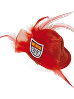 - Mini-Hut Köln rot mit Pailletten, mit Wappen Köln. weißen Federn und einer großen weißen Tüll-Schleife