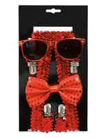 - Lieferung: Set Pailletten - Set, Rot 3 Teile ( Brille, Hosenträger, Schleife) auf Karte