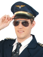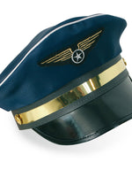 Diese Mütze ist ein Muss für jedes Pilotenkostüm. Eine Schirmmütze mit goldenem Band und Abzeichen.