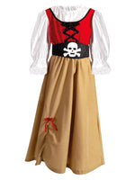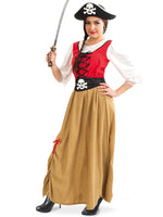 Erobere die Weltmeere! Als kühne Piratin in einem farbenfrohen Kostüm fällt das bestimmt nicht schwer! Das rassige Kleid ist lang geschnitten mit einer tolle Raffung am Rock. Die Taille wird durch einen breiten Gürtel betont. Lieferumfang: Kleid mit Gürtel. Tolle Hüte, Bandans sowie die passenden Schwerter und Pistolen finden sie auch bei uns im Shop.