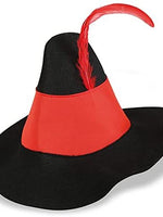 • Räuberhut schwarz mit rotem Band und roter Feder