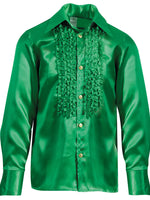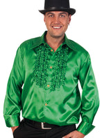 narrenwelt Rüschenhemd grün Glanz Retro 70th DJ Disco Schlager Hemd Schlagerhemd M - XL Motto Party Event