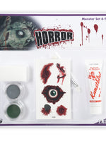 Set Monster-Set Tattoos / SchminkeLieferumfang: 6 tlg. Set: Wundentattoos + 2 x Schminke (schwarz,grau) + Kunstblut + Applikator + Schwämmchen für Halloween Party, Festival, EventMaterial: diverse Materialien/Inhaltsstoffein Blisterpackungund das findest Du in unserem Shop :...