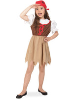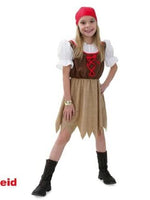 Auch Mädchen träumen davon das raue Leben der wilden Piraten zuführen. An Bord eines großen 3 Masters die Meere zu bereisen und viele tolle Abenteuer zu erleben. Mit diesem Kostüm rückt die Seefahrer Welt etwas näher. Das Oberteil ist ganz klassisch in Miederoptik und mit großen Puffärmeln gearbeitet. Das Rockteil hat einen zackigen vom Sturm verfranzten Saum.